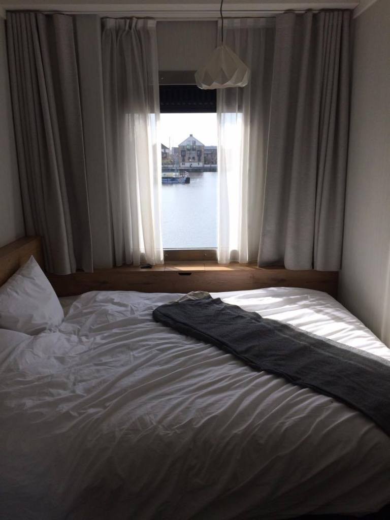 Je hebt kamers met zicht op het water, heel leuk om ’s morgens wakker te worden, gordijnen open te trekken en te genieten van het uitzicht!