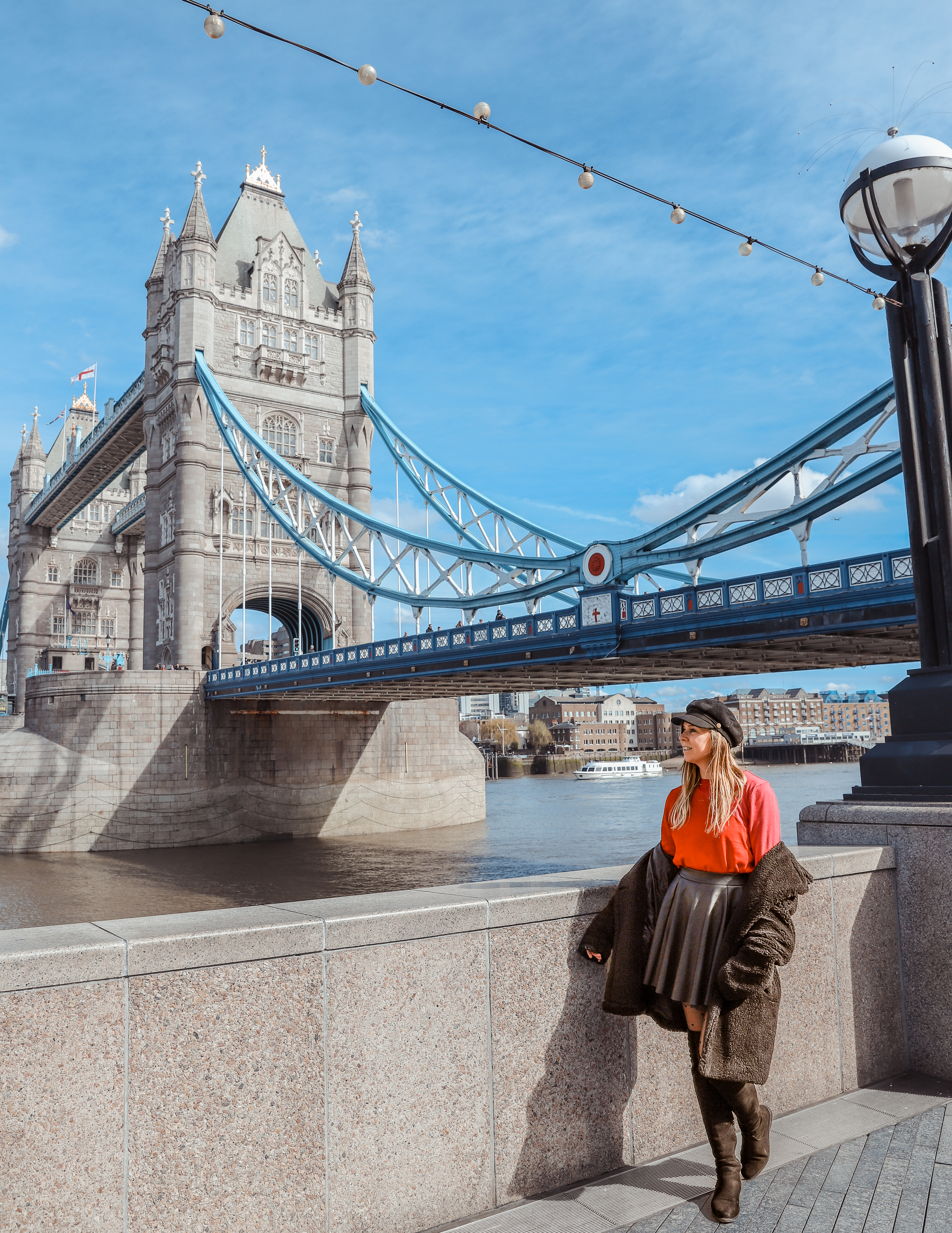 Tower Bridge: Ga ook weer over de brug (weg van de Tower of London) en neem de trappen naar beneden aan de rechterkant. Daar kan je aan het muurtje foto’s nemen met de fameuze Tower Bridge op de achtergrond.
