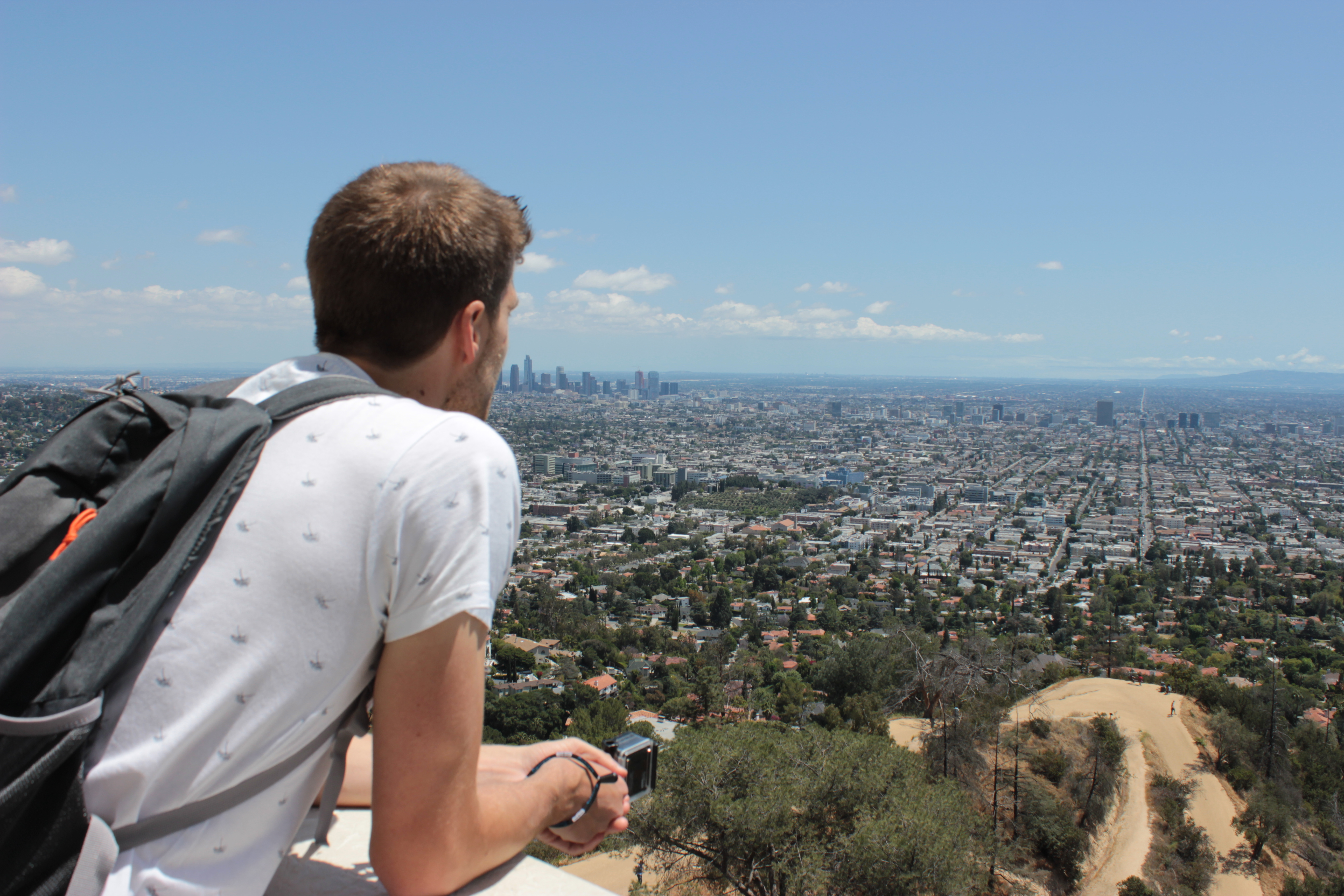 Onze derde stop was aan het Griffith Park en Griffith Observatory. Onze auto parkeerden we op een gratis parking in het park onderaan de heuvel. Zo hadden we ook nog een mooie wandeling richting Griffith Observatory (Volg de West trial route). Op het dak heb je een adembenemend zicht over LA! Daar hebben we gezellig geluncht met zicht op de hills en de Hollywood letters. Zalig toch. 🙂