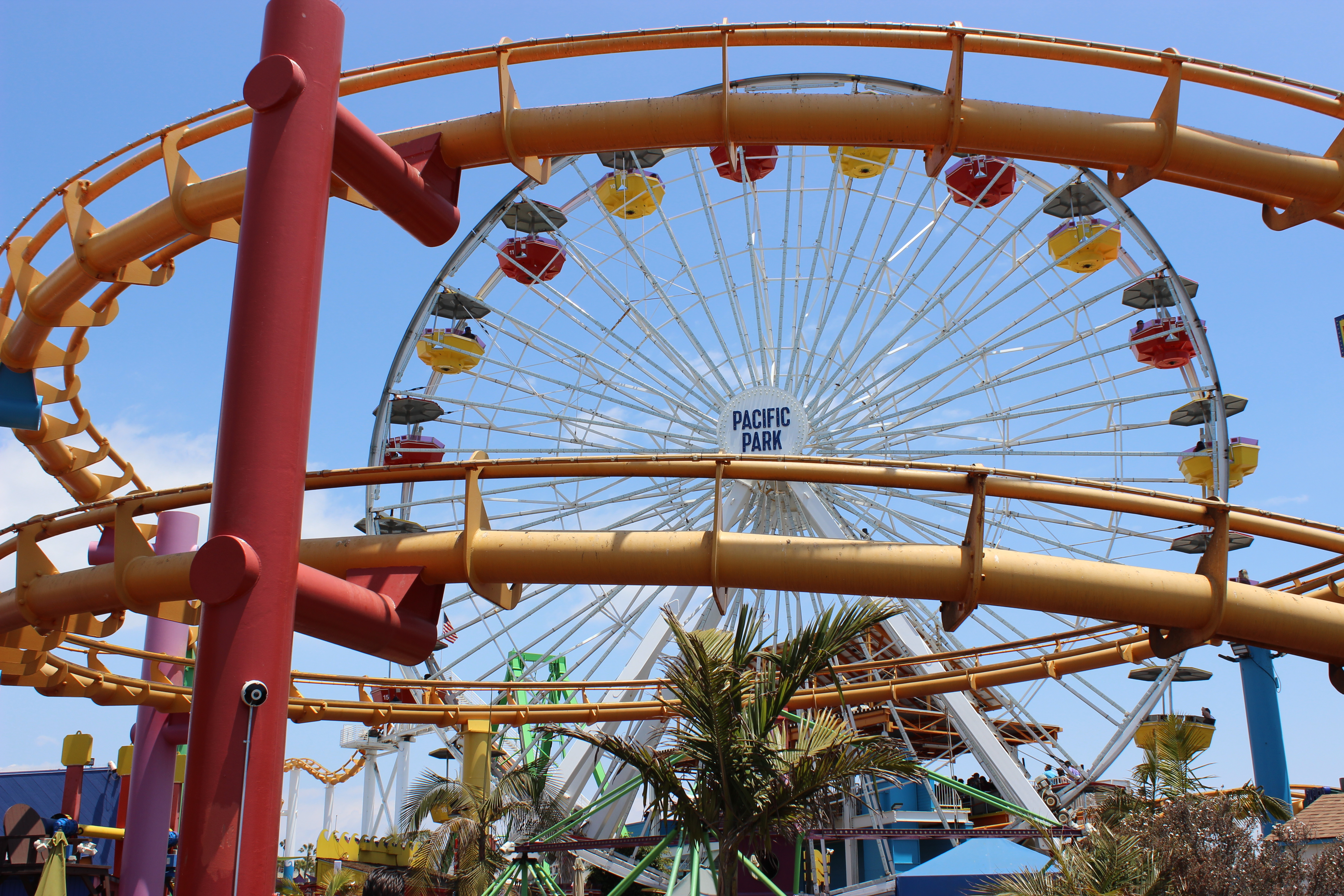 Aangekomen in Santa Monica zijn we eerst eens gaan rondkuieren op de Santa Monica Pier. Het is er wel druk maar toch leuk om langs het amusementenpark: Pacific park en alle restaurantjes te wandelen. Je hebt ook een enorm gezellig strand rondom de pier. Ga zeker ook eens een kijkje nemen op ‘muscle beach’ met de verschillende sporttoestellen waar gespierde mannen het beste van zichzelf tonen. 😉
