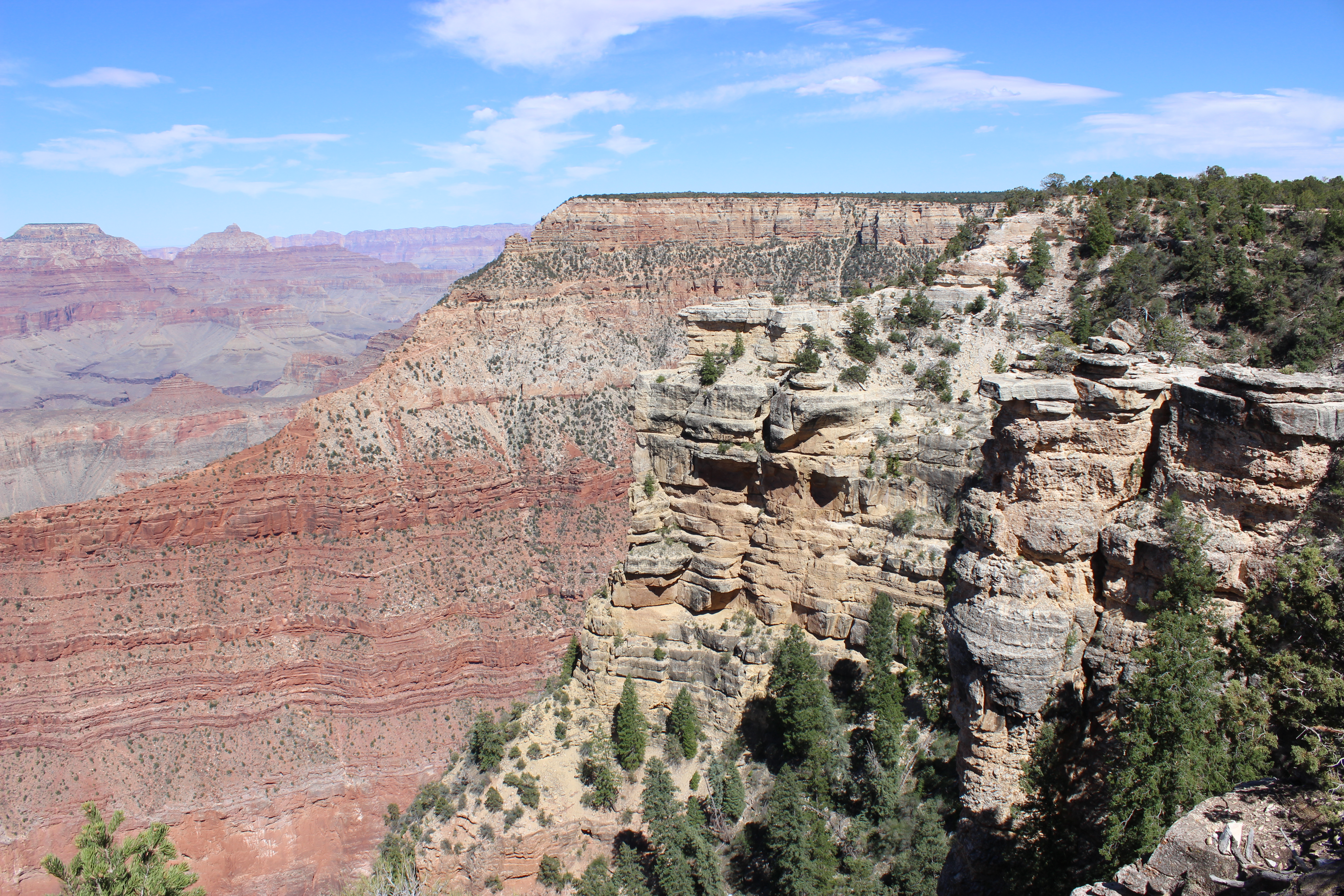 Wij deden een deel van de  Rim Trail: een wandelroute van 19 kilometer aan de zuidkant van de canyon. De Rim Trail loopt langs de rand van de kloof. Het mooie aan deze wandeling is dat het uitzicht steeds verandert. Er rijden ook gratis shuttlebussen doorheen het park dus je kan terugkeren wanneer je wilt langs deze route.