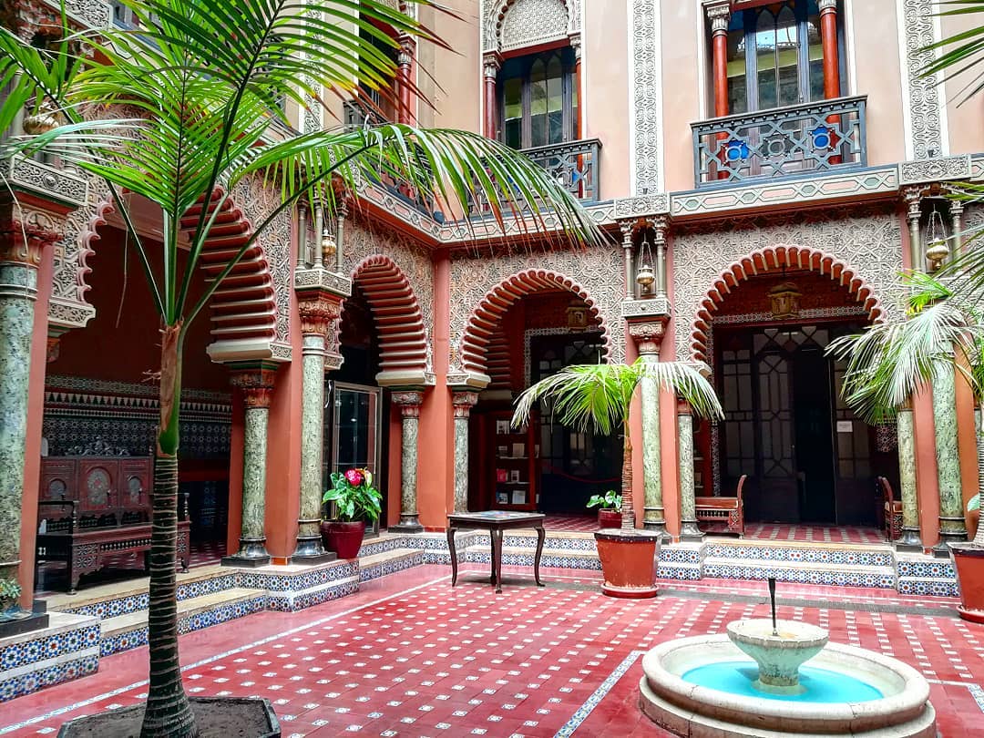 Casa do Alentejo, een verborgen patio in centrum Lissabon. Deze plek hoort bij een restaurant maar je kan eigenlijk kosteloos eens komen piepen hier zonder dat je in het restaurant moet eten! Ga onmiddellijk naar rechts als je de inkom binnenstapt en zo kom je terecht in deze oase van rust.