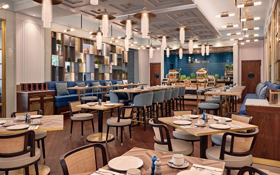 Er wordt dagelijks een uitgebreid ontbijtbuffet geserveerd. Hier kan je ook dineren in het eigentijdse à-la-carterestaurant LENZ (die ik hierboven al eens had vermeld) en genieten van hapjes en drankjes in de bar met een urban design SELLANY.